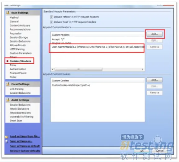 扫描器如果不能正常访问,是不能正常扫描,需要修改user-agent string。把这个参数改成手机浏览器,下图是从firefox上截图。参数可以参考这里的值。
