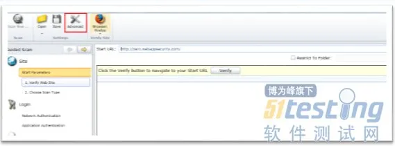 HP webinspect 10的参数修改方法,新建一个任务后,会有如下页面,选择advanced,进入设置对话框,