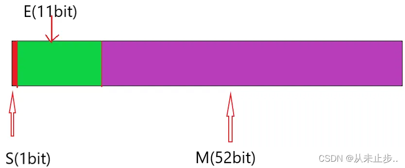 IEEE 754规定:对于64位的浮点数,最高的一位是符号位s,接着的11位是指数E,剩下的52位是有效数字M,如下图所示: