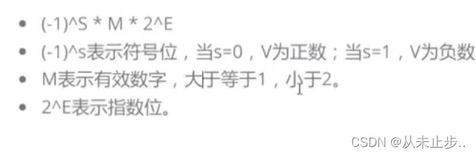 根据国际标准IEE(电子和电子工程协会)754,任意一个二进制浮点数V可以表示为下面的形式: