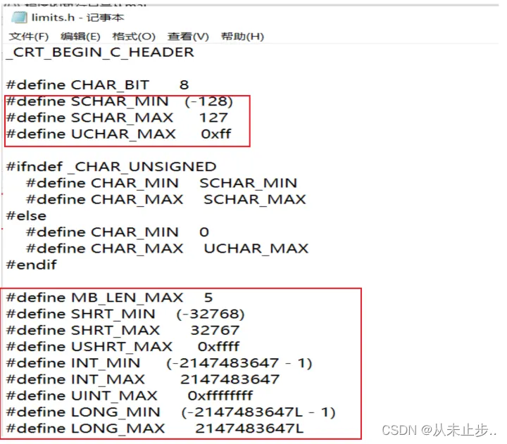 打开如下图所示,里面包含了很多有关不同数据类型的范围: