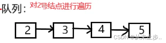 然后2号结点出队。