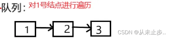 遍历完1号结点之后,1号结点出队。