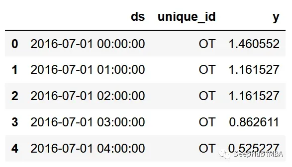 在上图中,请注意数据集已经具有NeuralForecast所期望的格式。包需要三列: