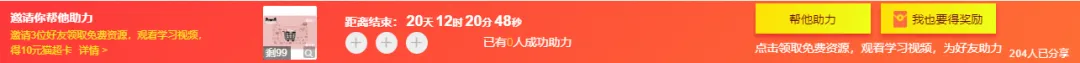 4、活动分享点击下方「帮他助力」,分享邀请 3 位好友领取免费资源,观看学习视频,得 10 元猫超卡(仅限前 100 名)