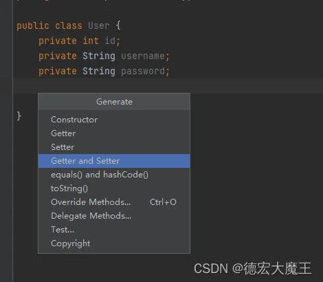 上一篇说到构造函数使用 alt+ins 弹出快捷键