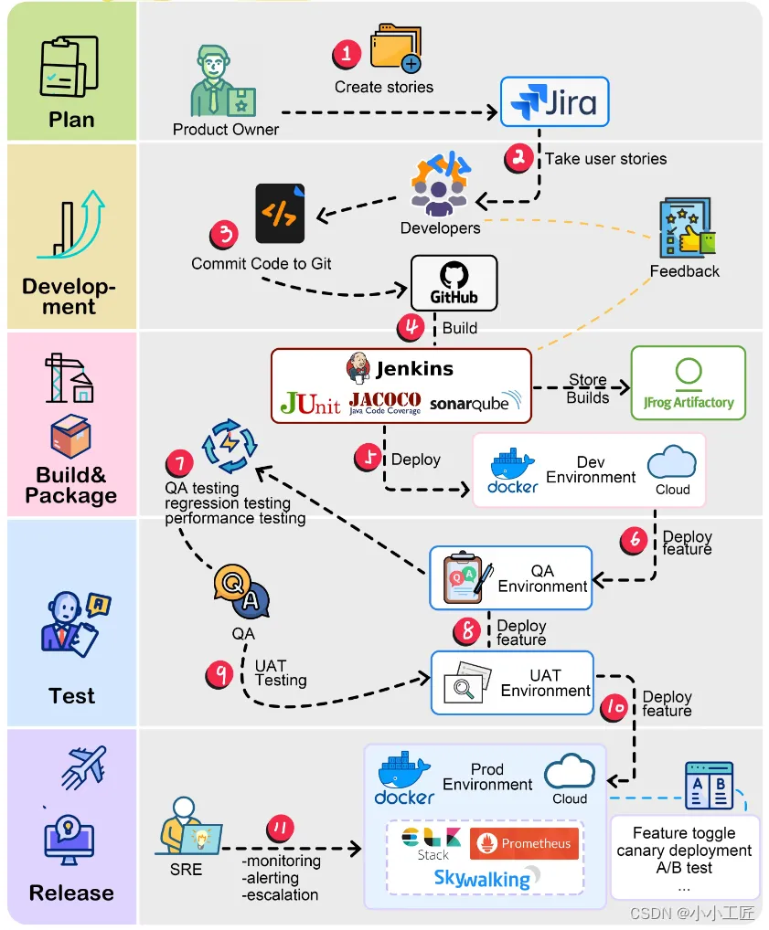 - 步骤 10:SRE(站点可靠性工程)团队负责生产环境的监控。