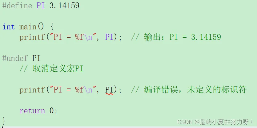 宏定义是一种在编译时用特定的值或代码片段替换标识符的方式。通过#define指令可以定义一个宏,而#undef指令可以取消定义宏。