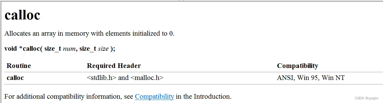 malloc和calloc的区别:与函数 malloc 的区别只在于 calloc 会在返回地址之前把申请的空间的每个字节初始化为全0