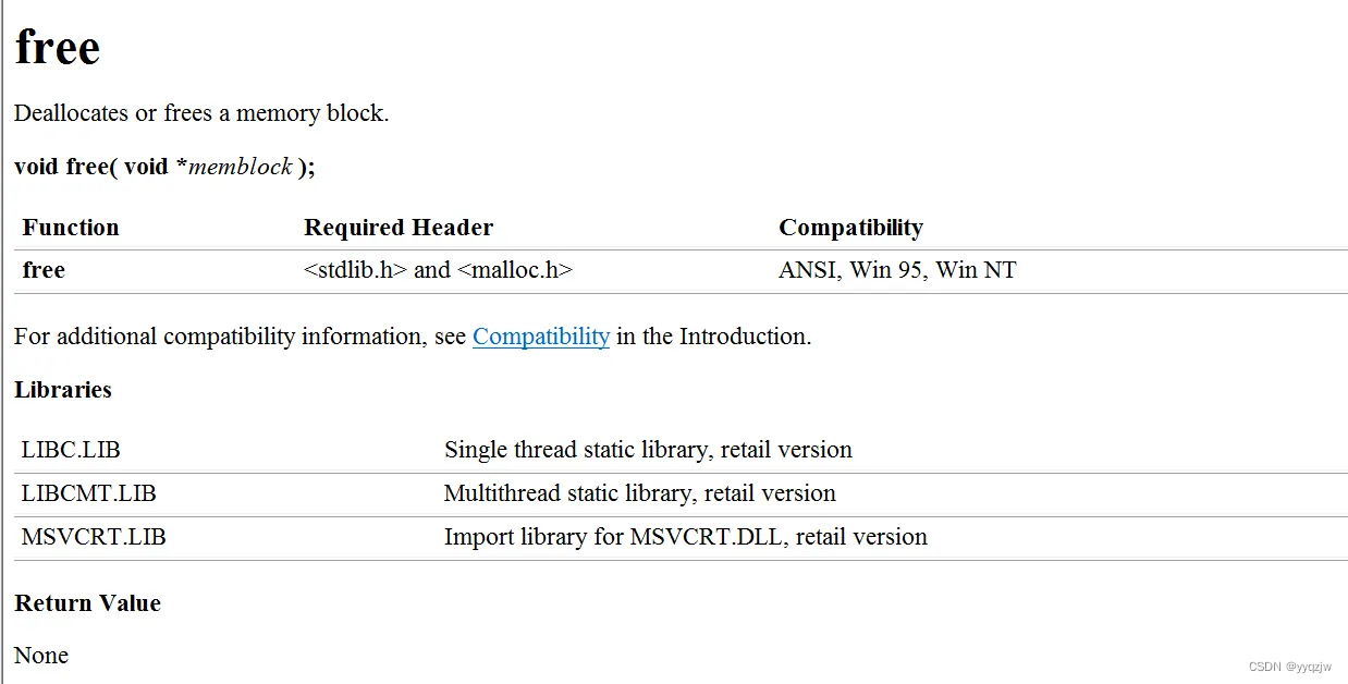 返回值:申请失败返回空指针,申请成功返回指向申请该空间首地址的指针