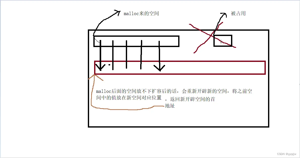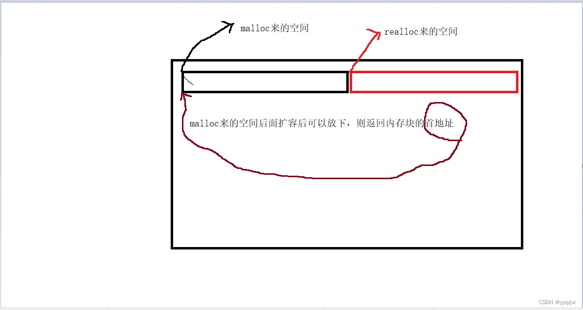 参数:第一个参数接收要扩容内存块的首地址,扩容后总字节大小(包括原来的字节大小)