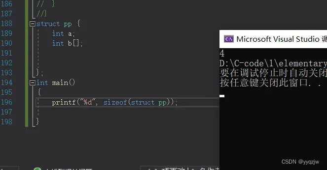 struct pp { int a; int b[]; }; int main() { printf("%d", sizeof(struct pp)); }