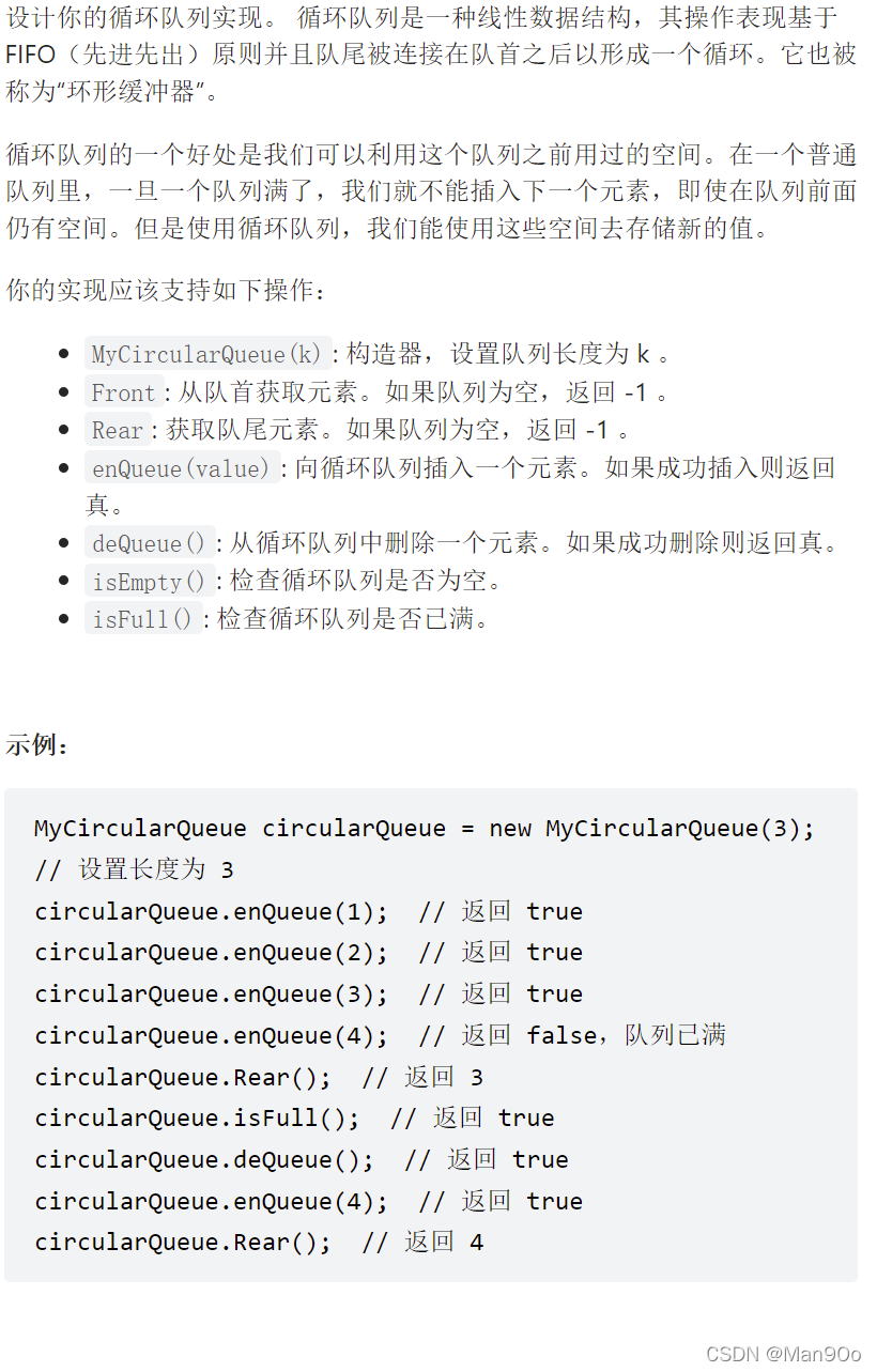 typedef struct { int* a;//数组 int k;//队列容量 int head; int tail; } MyCircularQueue;