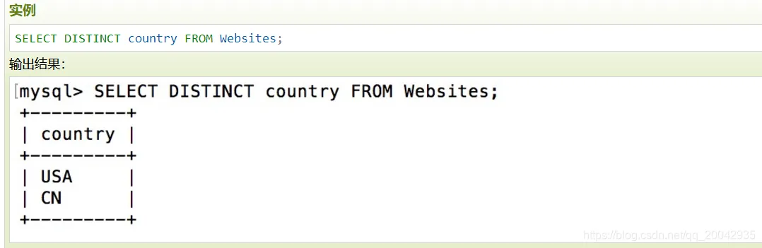 在表中,一个列可能会包含多个重复值,有时您也许希望仅仅列出不同(distinct)的值。