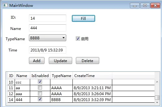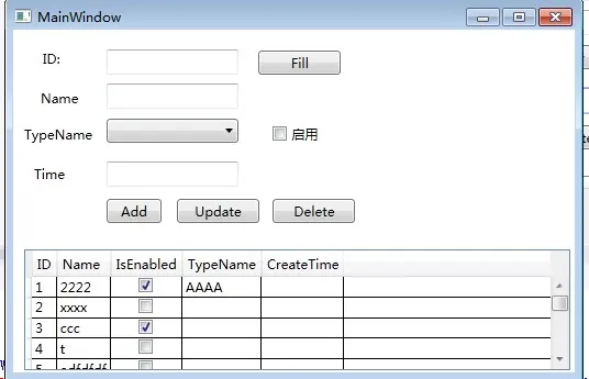 示例界面:内容包括WPF下增删改查: