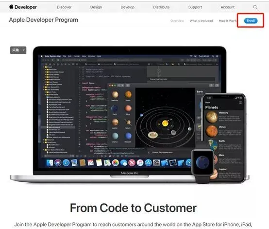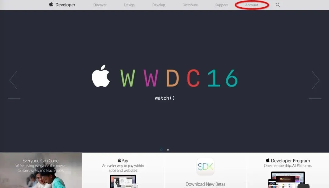 首先打开苹果开发网站,通过Account进入开发账户,如图: