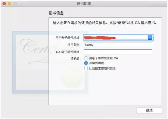 接下来填写邮件地址,选择存储到磁盘,点击继续
