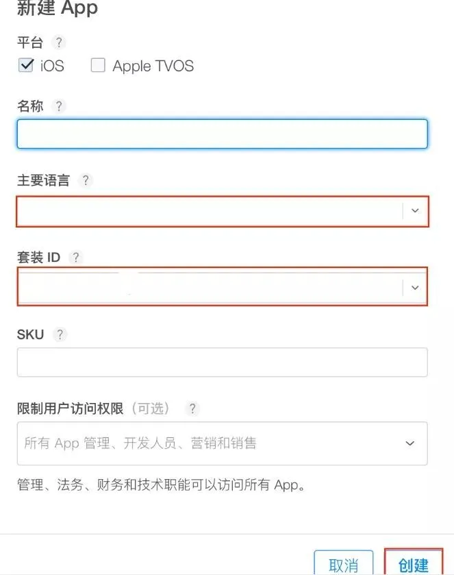 补充说明6-1“名称”是新建的app在App Store中显示的名字;“SKU”可以填写当天日期外加一个编号即可,这是你为你的应用指定的一个标识符。