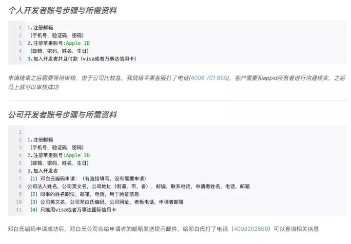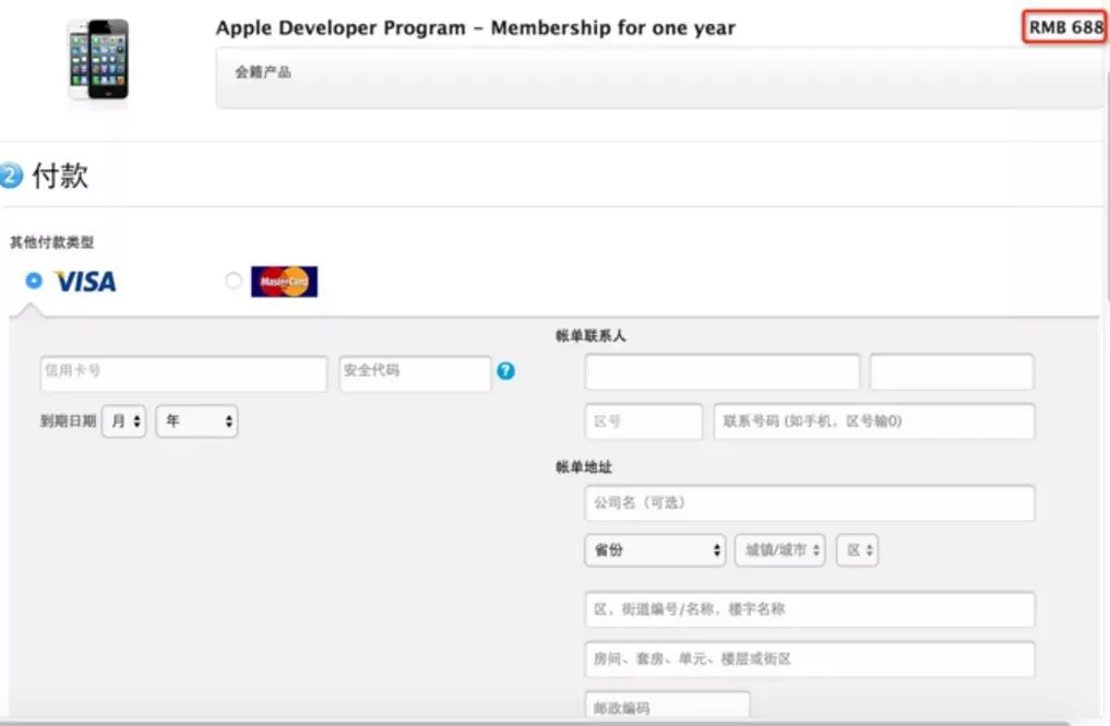 - 公司账号:以公司名义申请的开发者账号,用于公司内部的开发者共用,可以在 App Store 发布应用,申请流程相对麻烦,¥688.00/年 ($99.00/year)。