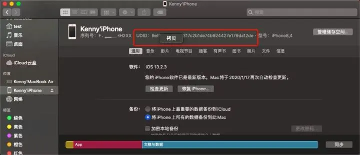 获取设备udid可以通过老版本iTunes获取(最新版本无法获取),macOS Catalina及更新系统则可以直接通过“访达”获取,另外也可以通过其它一些手机助手获取。