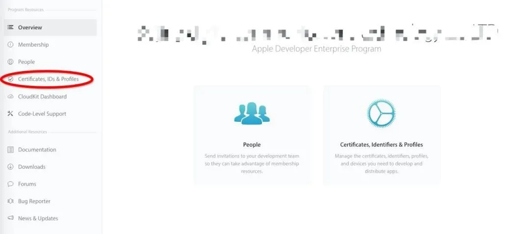 登录成功后选择Certificates, Identifiers & Profiles(如果没有这一项请查看教程最开始的说明),如图: