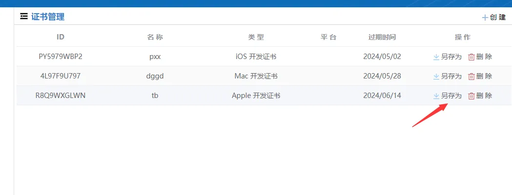 新建证书完成后另存文件保存下来,证书就已经制作好了,点击另存到想要保存的位置就好了。