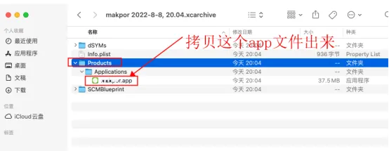 在Products目录下,把xxx.app文件拷贝出来,新建Playload文件夹,压缩Playload文件夹,得到