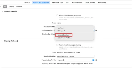 xcode添加好了苹果开发者账号,个人p12证书有了,接下来就是xcode打包ios应用: