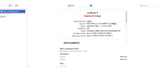 描述文件:这个文件主要包含了证书,公钥,设备信息等,和app绑定。测试设备:主要是录入要内测的ios手机,主要是udid,udid可以理解为设备的一个唯一标识码,