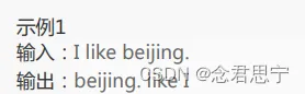 输入描述:每个测试输入包含1个测试用例: I like beijing. 输入用例长度不超过100