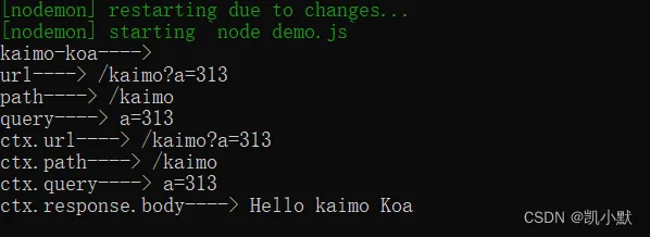 启动服务,访问 http://localhost:3000/kaimo?a=313
