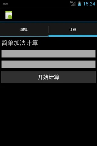 <?xml version="1.0" encoding="utf-8"?> <LinearLayout xmlns:android="http://schemas.android.com/apk/res/android" android:layout_width="match_parent" android:layout_height="match_parent" android:orientation="vertical" > <TextView android:layout_width="fill_parent" android:layout_height="wrap_content" android:layout_margin="5dp" android:text="简单加法计算" android:textSize="20dp" /> <EditText android:layout_width="fill_parent" android:layout_height="wrap_content" android:layout_margin="5dp" android:background="@android:color/darker_gray" /> <EditText android:layout_width="fill_parent" android:layout_height="wrap_content" android:layout_margin="5dp" android:background="@android:color/darker_gray" /> <Button android:layout_width="fill_parent" android:layout_height="wrap_content" android:text="开始计算" /> </LinearLayout>