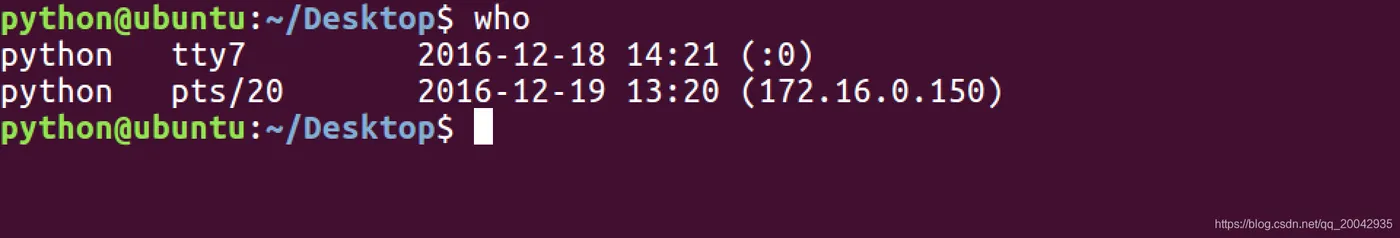 who命令用于查看当前所有登录系统的用户信息。