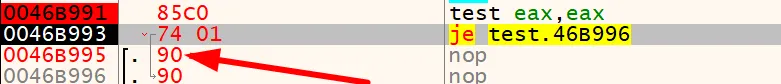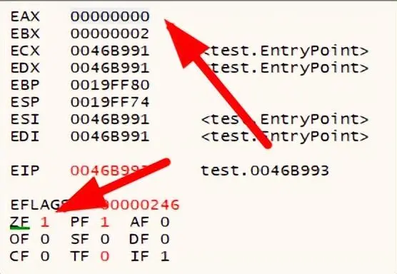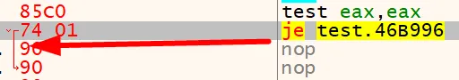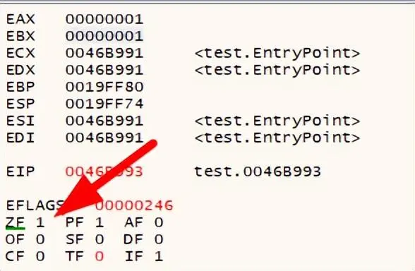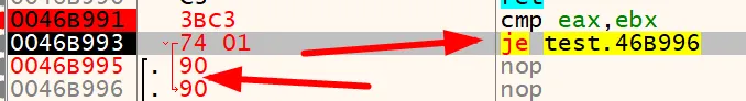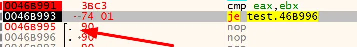 如果将eax,ebx分别置为1,2,je将不会发生跳转