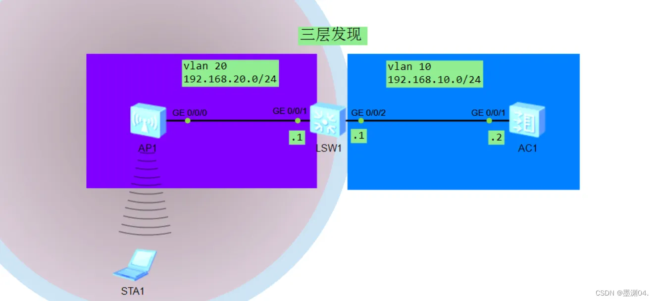 拓扑图如上,AP与S1在同一VLAN,S1与AC在同一VLAN,AP采用三层发现AC,AP与客户的DHCP由S1提供。