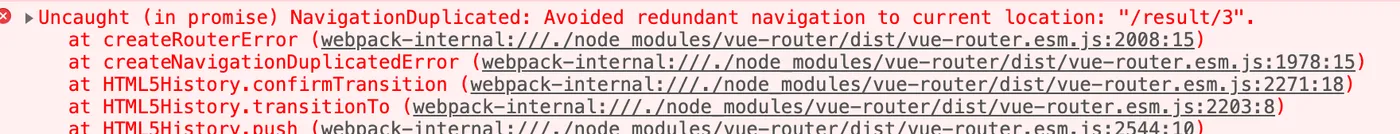 vue项目router报NavigationDuplicated: Avoided redundant navigation to current location: "/result/3"错误
