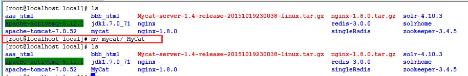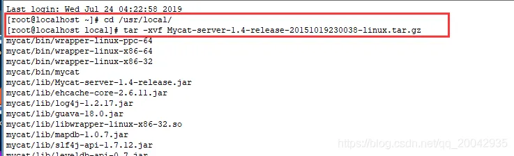 [root@localhost ~]# cd /usr/local/ [root@localhost local]# tar -xvf Mycat-server-1.4-release-20151019230038-linux.tar.gz