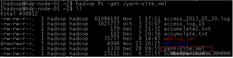 从HDFS下载文件,命令: Hadoop fs -get /yarn-site.xml