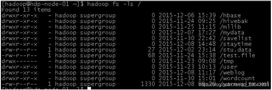 查看HDFS中的目录信息,命令: Hadoop fs –ls /