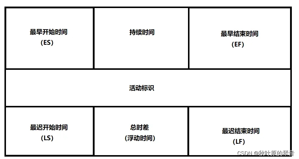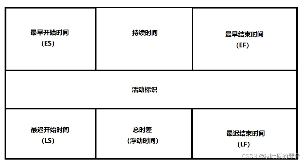 总时差(浮动时间)= 最迟结束时间(LF)- 最早结束时间(EF)
