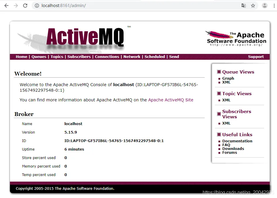 登录成功后,进入activeMQ的欢迎页