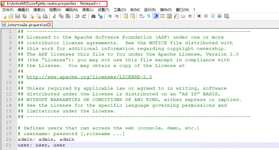 用户名权限配置信息记录在\conf\jetty.xml