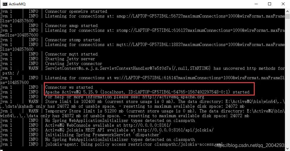 启动成功的日志打印如下: