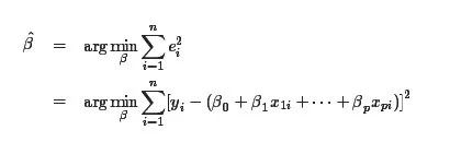这些问题都可以用如下数学模型描述:我们想估计的量是β0,⋯,βp,另有若干个可以测量的量x1,⋯,xp,y,这些量之间有线性关系