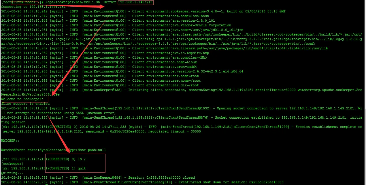 Zookeeper链接:http://zookeeper.apache.org/ wget http://mirrors.cnnic.cn/apache/zookeeper/zookeeper-3.4.8/zookeeper-3.4.8.tar.gz -P /usr/local/src/ tar zxvf zookeeper-3.4.8.tar.gz -C /opt cd /opt && mv zookeeper-3.4.8 zookeeper cd zookeeper cp conf/zoo_sample.cfg conf/zoo.cfg #把zookeeper加入到环境变量 echo -e "# append zk_env\nexport PATH=$PATH:/opt/zookeeper/bin" >> /etc/profile