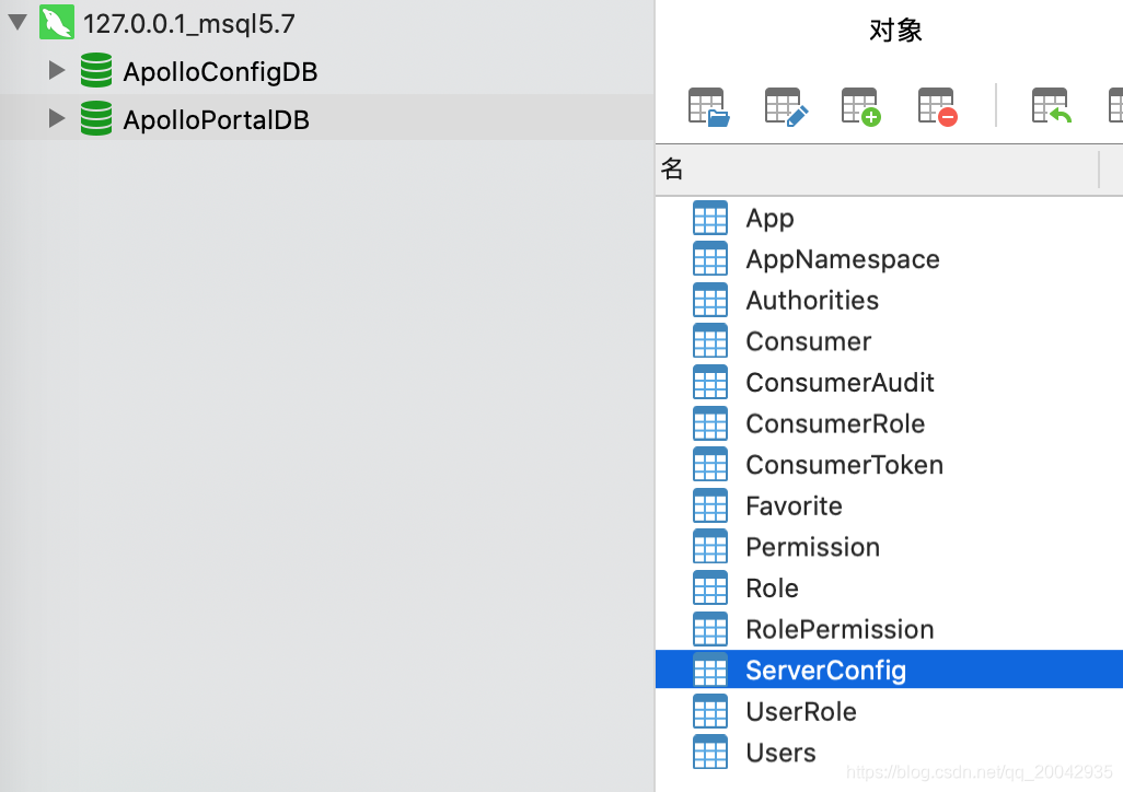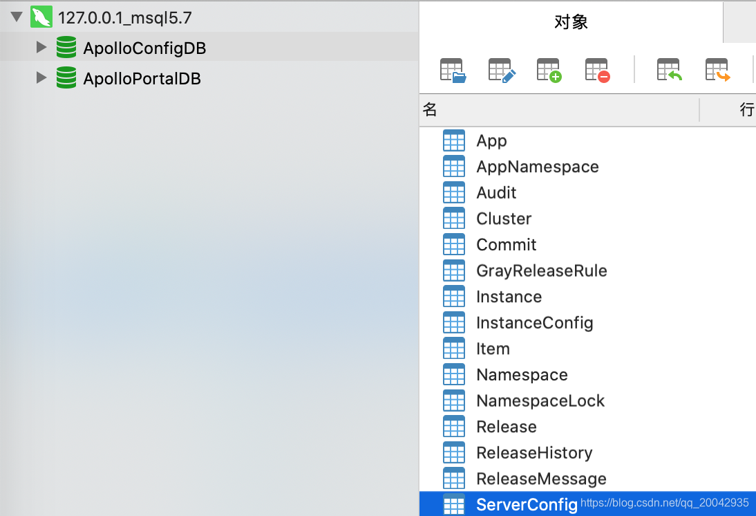 Apollo服务端共需要两个数据库:ApolloPortalDB和ApolloConfigDB,我们把数据库、表的创建和样例数据都分别准备了sql文件,只需要导入数据库即可。