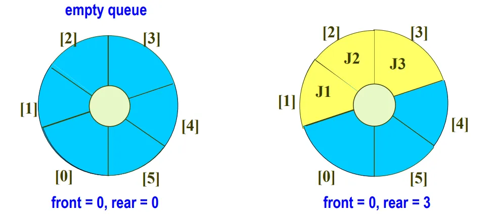 rear = (rear + 1) % MAX_QUEUE_SIZE; front = (front + 1) % MAX_QUEUE_SIZE;