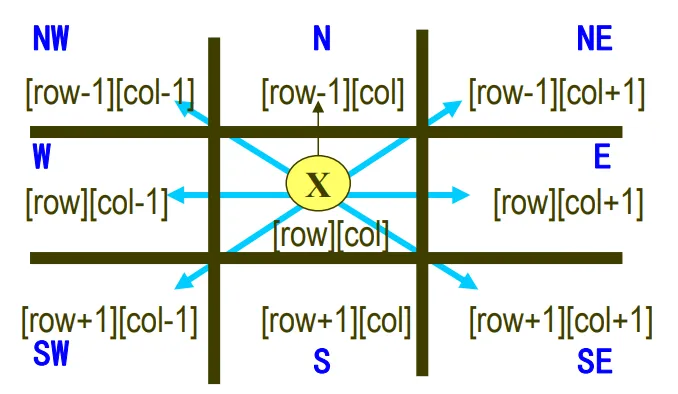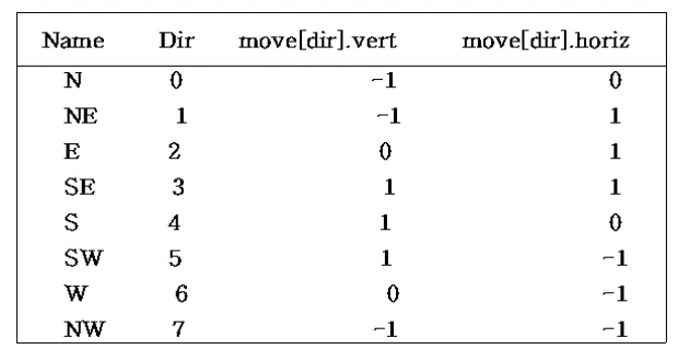 typedef struct { short int vert; short int horiz; } offsets; offsets move[8]; /*array of moves for each direction*/