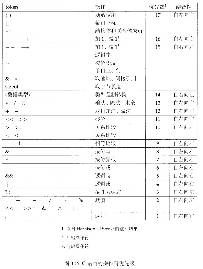 参见图3.12,关于C语言的优先级层次,参见关联性。