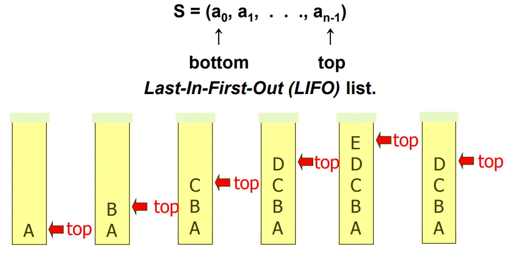 栈是一个有序列表,其中插入和删除在称为顶部的一端进行。